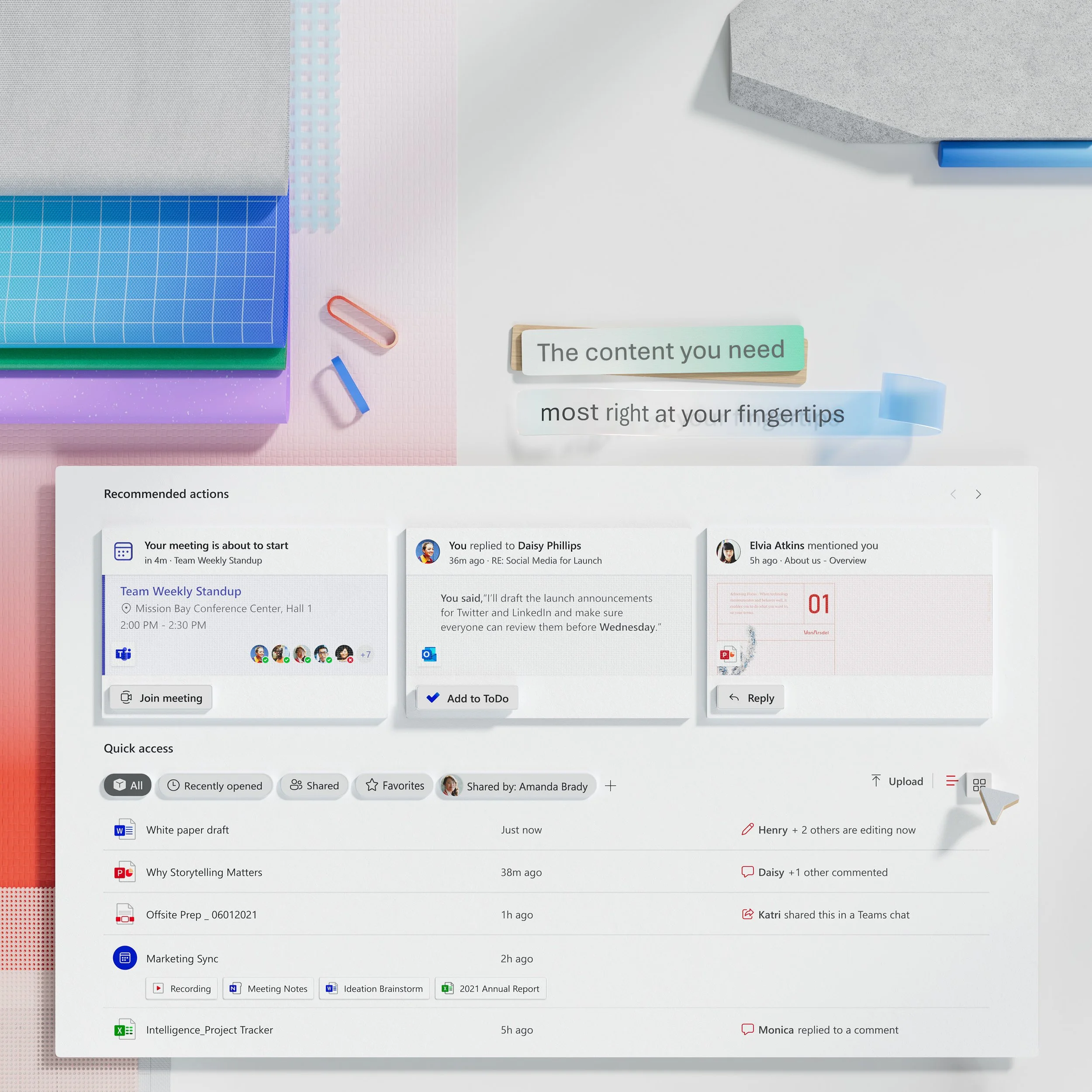 This project, called Office 2.0, began with the goal of bringing all of your content to the same place. We wanted Office.com to be a place to find your content, create new content, and find your focus for what content to dive into next.